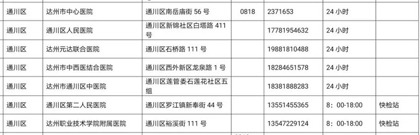 達(dá)州市通川區(qū)核酸檢測(cè)機(jī)構(gòu)地址及預(yù)約咨詢(xún)電話(huà)