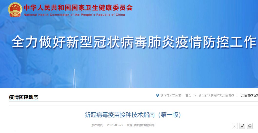 國家衛(wèi)健委發(fā)布新冠病毒疫苗接種技術(shù)指南(第一版)