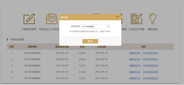 第三步:選擇填報(bào)年度。如往年未填報(bào),須先補(bǔ)報(bào),再報(bào)送2019年度的年報(bào)。