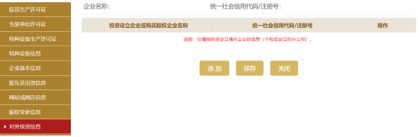 點(diǎn)擊添加,填寫外投資信息。點(diǎn)擊保存,進(jìn)入填寫外投資基本信息頁面,再點(diǎn)擊保存。