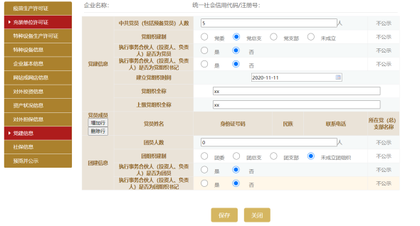 十四步:進(jìn)入黨建信息頁面。填寫黨建信息,點(diǎn)擊保存。