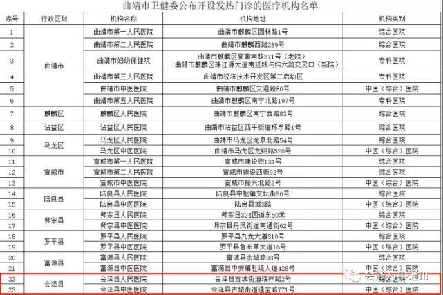 二、會(huì)澤縣設(shè)有發(fā)熱門診的醫(yī)療機(jī)構(gòu)信息