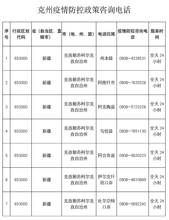 克州咨詢電話:0908-4225831、0908-4231081;0908-4226256、0908-4228011