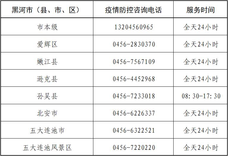 黑河市新冠疫情防控指揮部咨詢電話:13204560965;