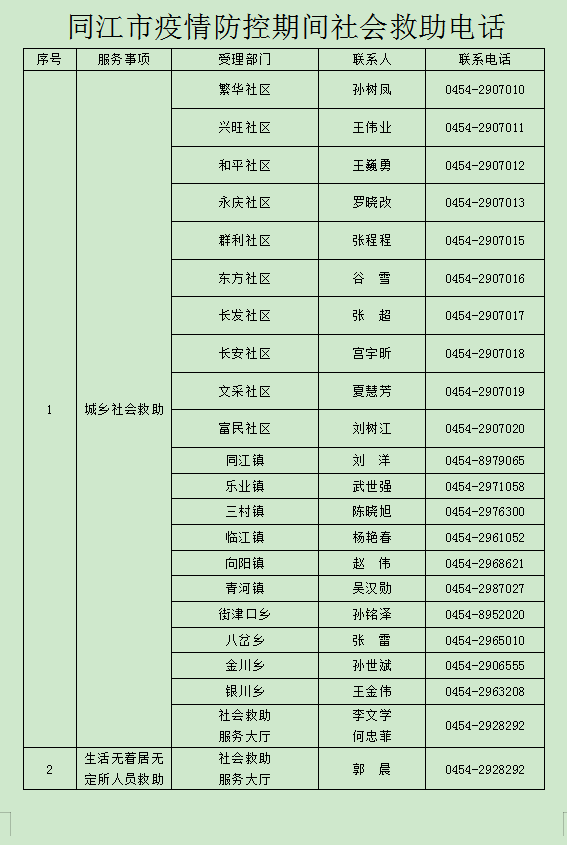 同江市民政局疫情防控期間業(yè)務(wù)辦理咨詢電話