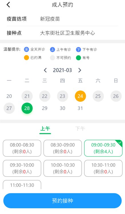 2.隨著接種工作推進(jìn),接受18-59歲人群預(yù)約免費(fèi)接種新冠病毒疫苗的接種單位會(huì)越來越多,暫時(shí)預(yù)約不上的市民可過一段時(shí)間(幾天)再次嘗試。
