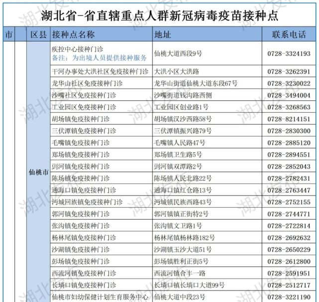 仙桃市新冠病毒疫苗接種點預(yù)約電話及接種地址
