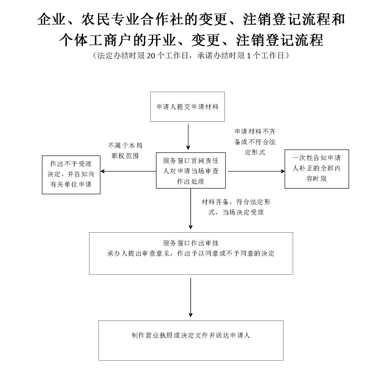 第九條 申請設(shè)立個人獨資企業(yè),應(yīng)當(dāng)由投資人或者其委托的代理人向個人獨資企業(yè)所在地的登記機關(guān)提交設(shè)立申請書、投資人身份證明、生產(chǎn)經(jīng)營場所使用證明等文件。…… 第十二條 登記機關(guān)應(yīng)當(dāng)在收到設(shè)立申請文件之日起十五日內(nèi),對符合本法規(guī)定條件的,予以登記,發(fā)給營業(yè)執(zhí)照;對不符合本法規(guī)定條件的,不予登記,并應(yīng)當(dāng)給予書面答復(fù),說明理由。 第十四條 個人獨資企業(yè)設(shè)立分支機構(gòu),應(yīng)當(dāng)由投資人或者其委托的代理人向分支機構(gòu)所在地的登記機關(guān)申請登記,領(lǐng)取營業(yè)執(zhí)照?!?第十五條 個人獨資企業(yè)存續(xù)期間登記事項發(fā)生變更的,應(yīng)當(dāng)在作出變更決定之日起的十五日內(nèi)依法向登記機關(guān)申請辦理變更登記。 第三十二條 個人獨資企業(yè)清算結(jié)束后,投資人或者人民法院指定的清算人應(yīng)當(dāng)編制清算報告,并于十五日內(nèi)到登記機關(guān)辦理注銷登記。 |