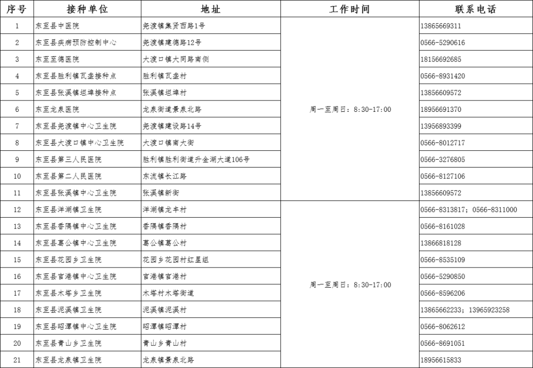 一、池州市東至縣新冠病毒疫苗接種點(diǎn)信息