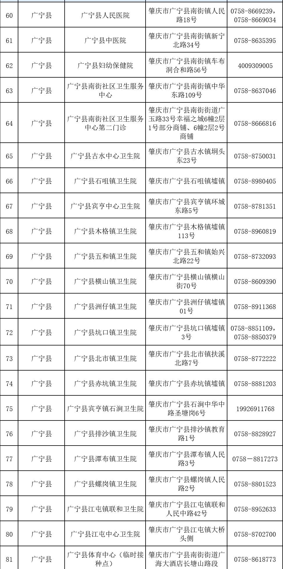 肇慶市廣寧縣新冠病毒疫苗接種點信息