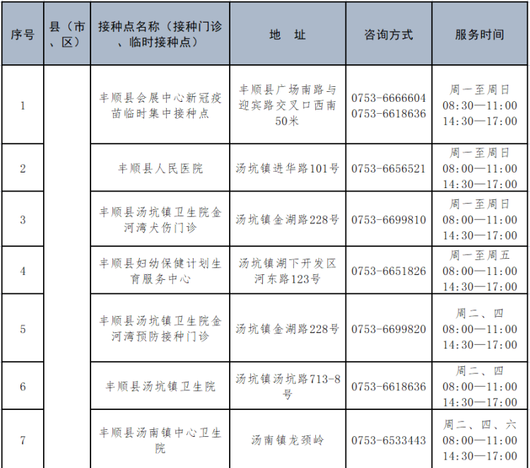 梅州市豐順縣新冠病毒疫苗接種點(diǎn)信息