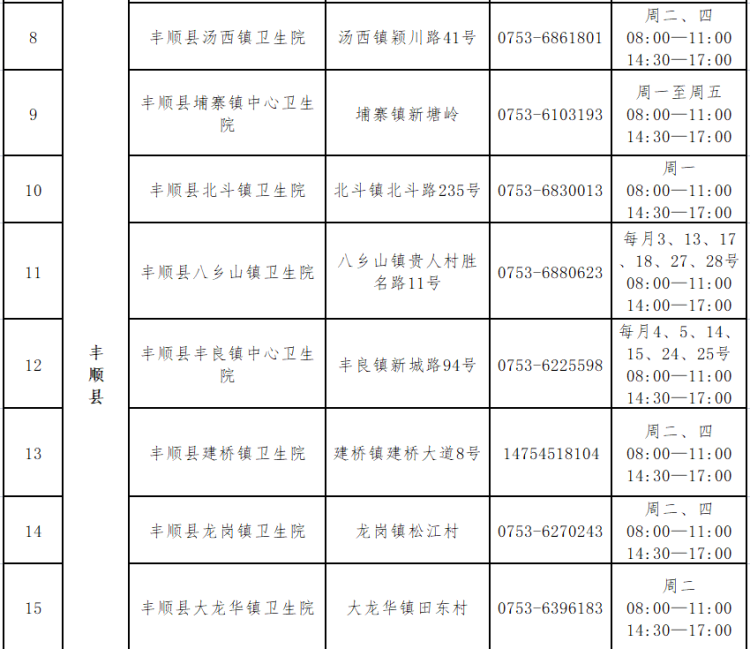 接種地址:豐順縣留隍鎮(zhèn)茶背村