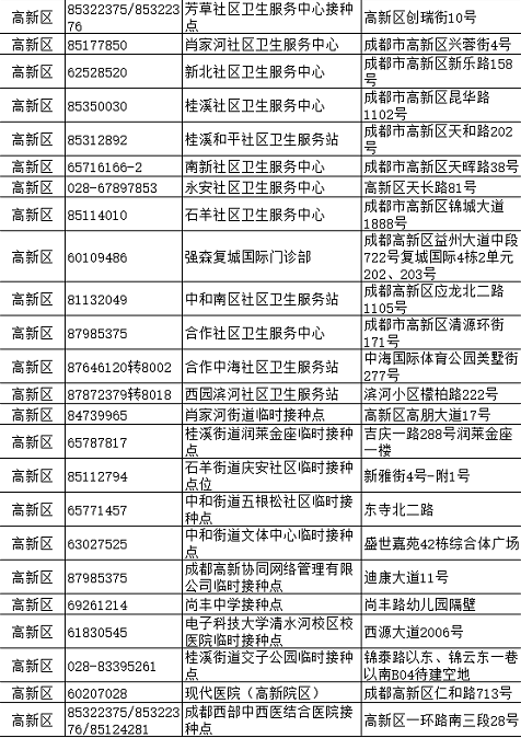 成都市高新區(qū)新冠病毒疫苗接種點(diǎn)信息