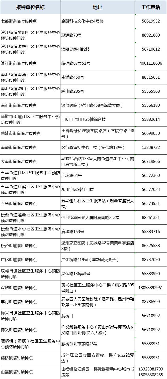 接種地址:溫州市鹿城區(qū)七都街道經(jīng)四路