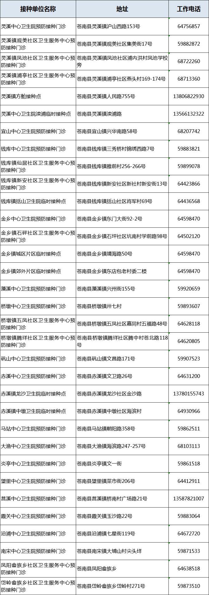 溫州市蒼南縣新冠病毒疫苗接種點(diǎn)信息