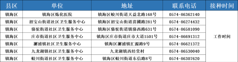 接種地址:寧波市鎮(zhèn)海區(qū)蛟川街道東信路8號(hào)