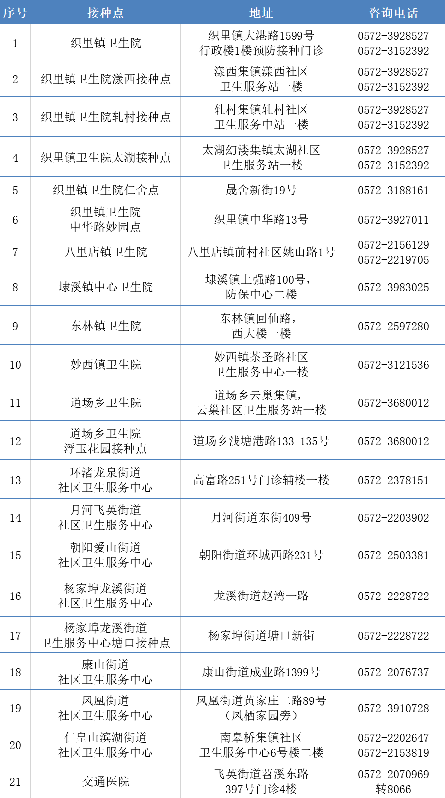 湖州市吳興區(qū)新冠病毒疫苗接種點信息