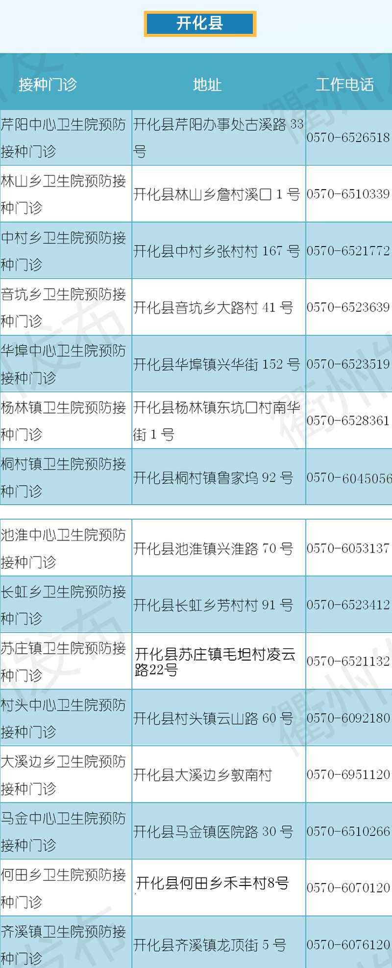 1、衢州市開化縣芹陽中心衛(wèi)生院預防接種門診