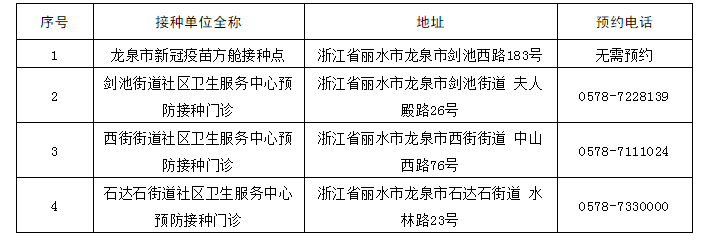 麗水市龍泉市新冠病毒疫苗接種點(diǎn)信息