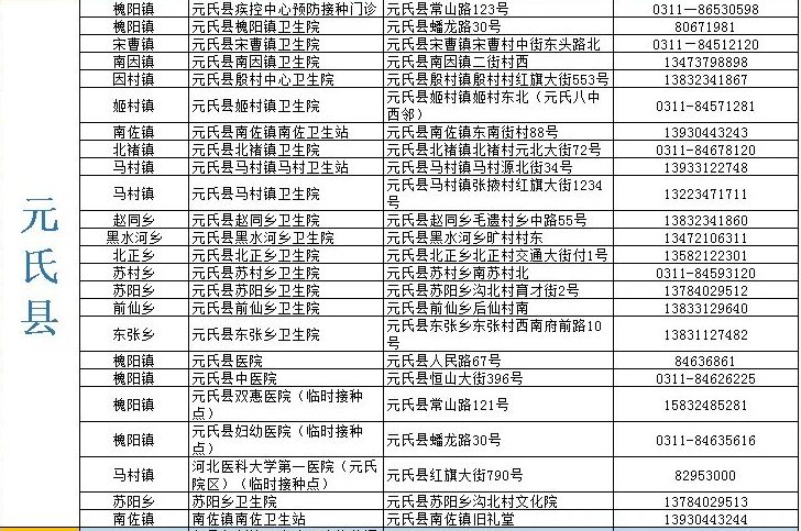 一、石家莊市元氏縣新冠病毒疫苗接種點信息