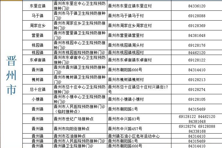 一、石家莊市晉州市新冠病毒疫苗接種點(diǎn)信息