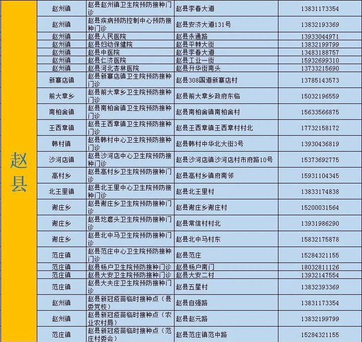一、石家莊市趙縣新冠病毒疫苗接種點(diǎn)信息
