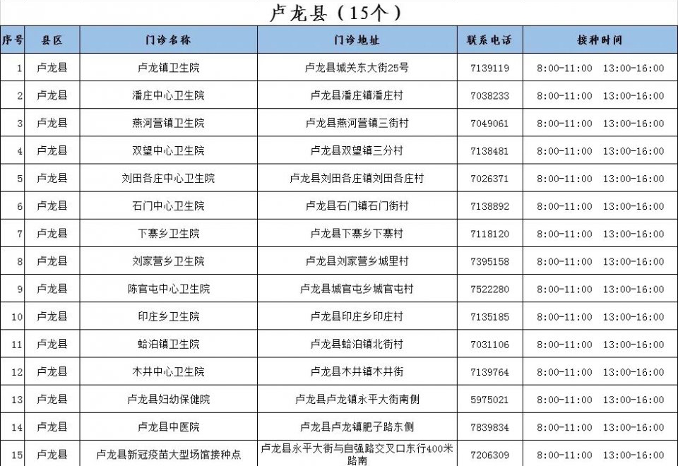 一、秦皇島市盧龍縣新冠病毒疫苗接種點(diǎn)信息