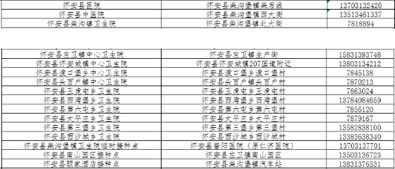 一、張家口市懷安縣新冠病毒疫苗接種點信息