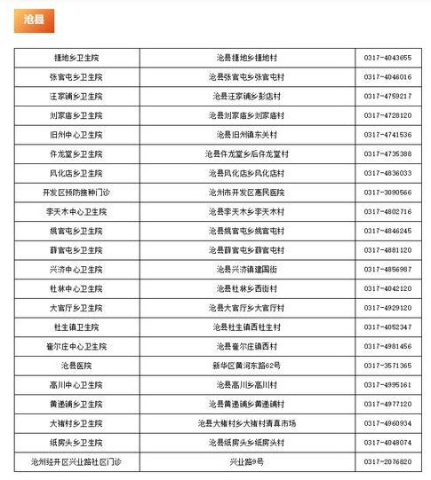 一、滄州市滄縣新冠病毒疫苗接種點(diǎn)信息