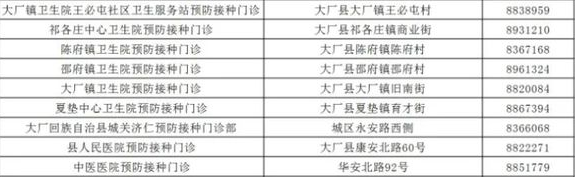 一、廊坊市大廠縣新冠病毒疫苗接種點信息