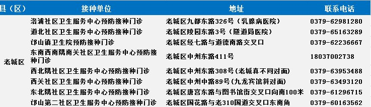洛陽市老城區(qū)新冠病毒疫苗接種點信息