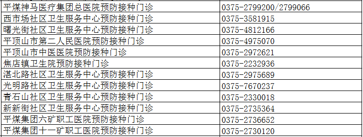 1、平頂山市平煤神馬醫(yī)療集團(tuán)總醫(yī)院預(yù)防接種門診