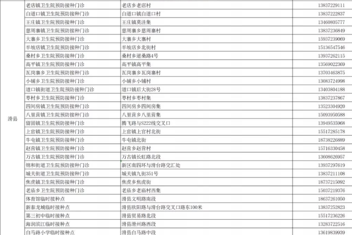 滑縣新冠病毒疫苗接種點(diǎn)及預(yù)約咨詢電話