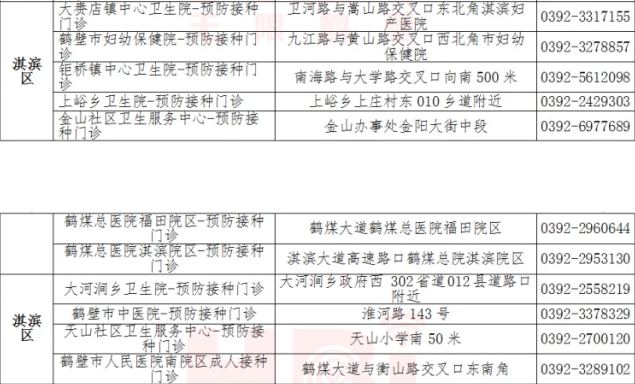 接種地址:鶴壁市淇濱區(qū)淮河路143號