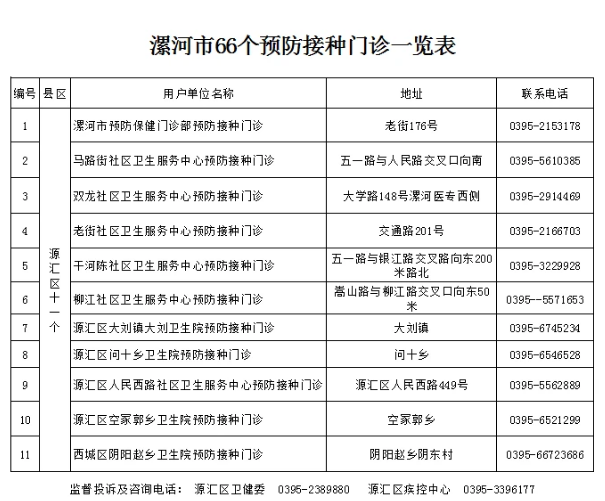 監(jiān)督投訴及咨詢電話: 源匯區(qū)衛(wèi)健委 0395-6986837 源匯區(qū)疾控中心 0395-3396177