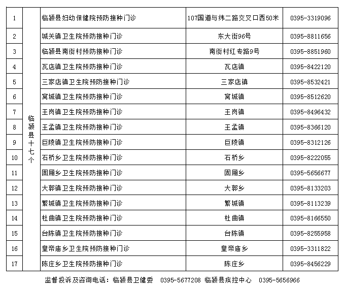 監(jiān)督投訴及咨詢電話:臨潁縣衛(wèi)健委 0395-5677208 臨潁縣疾控中心 0395-5656966