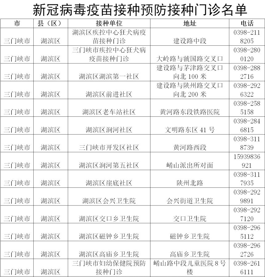 三門峽市湖濱區(qū)新冠病毒疫苗接種點(diǎn)信息
