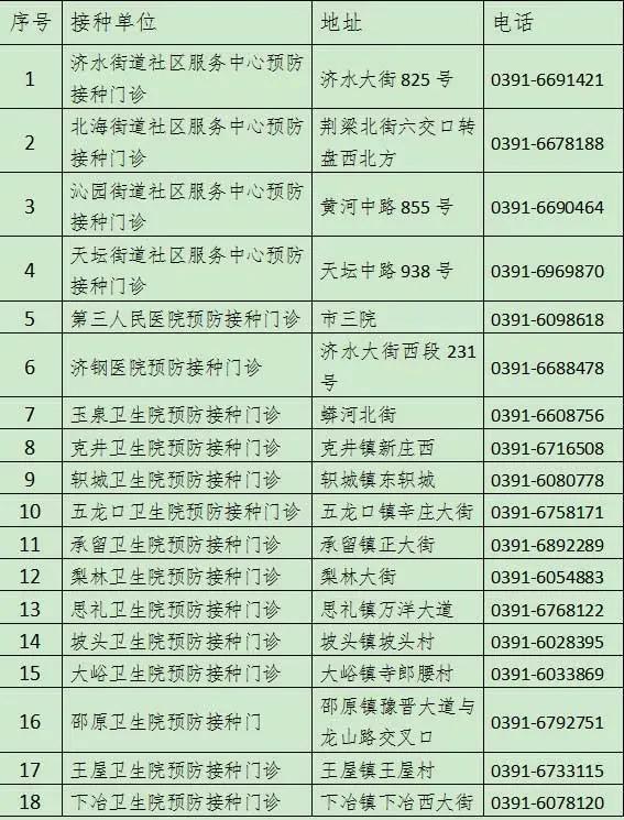 接種地址:河南省濟源市軹城鎮(zhèn)東軹城