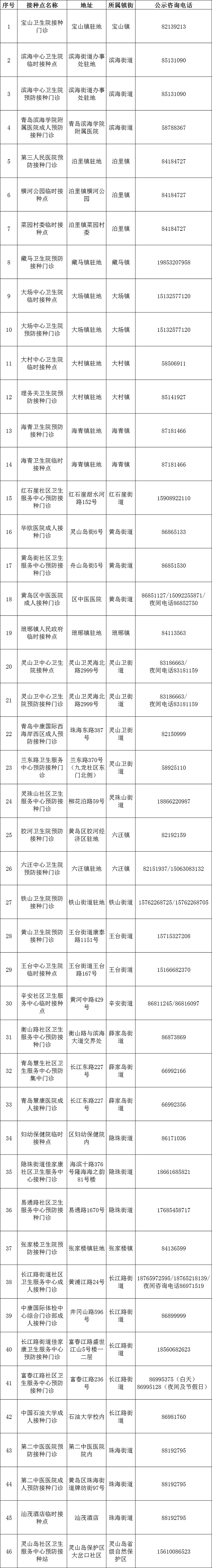 青島市西海岸新區(qū)(黃島區(qū))新冠病毒疫苗接種點及預約咨詢電話
