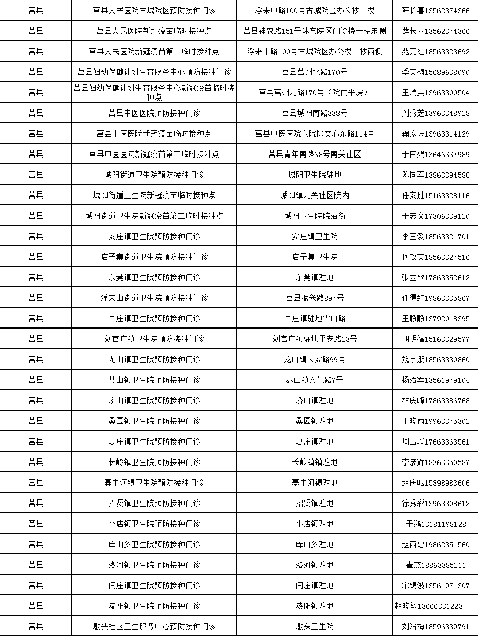 日照市莒縣新冠病毒疫苗接種點(diǎn)信息