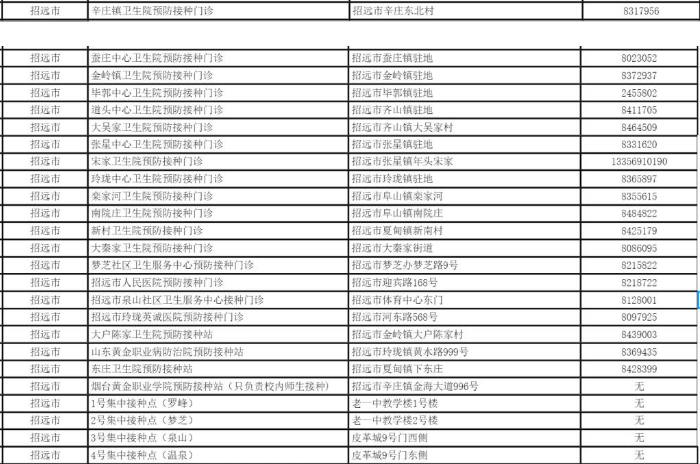 煙臺市招遠市新冠病毒疫苗接種點信息