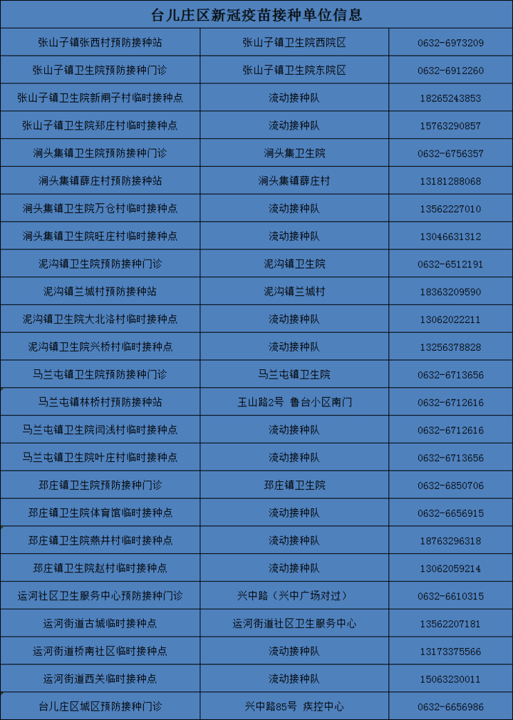 棗莊市臺(tái)兒莊區(qū)新冠病毒疫苗接種點(diǎn)信息