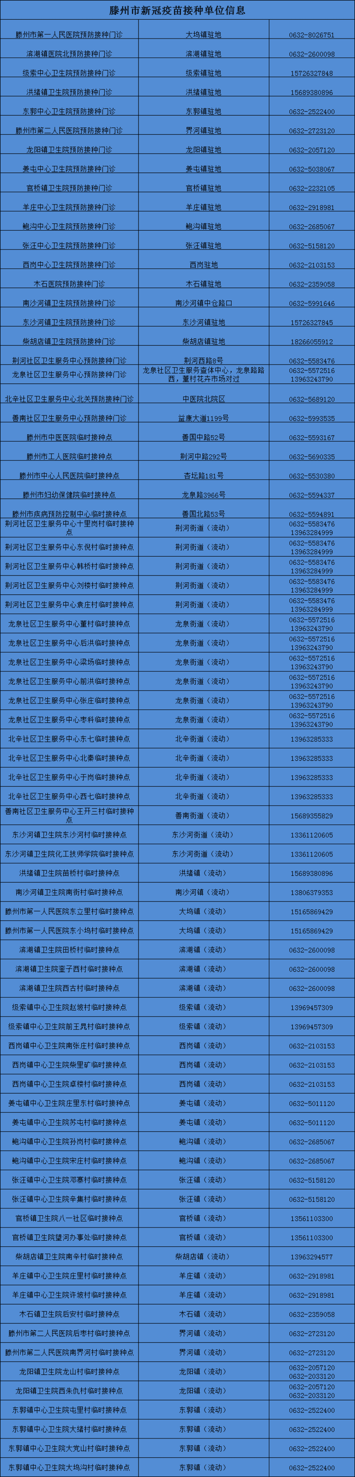 棗莊市滕州市新冠病毒疫苗接種點(diǎn)信息