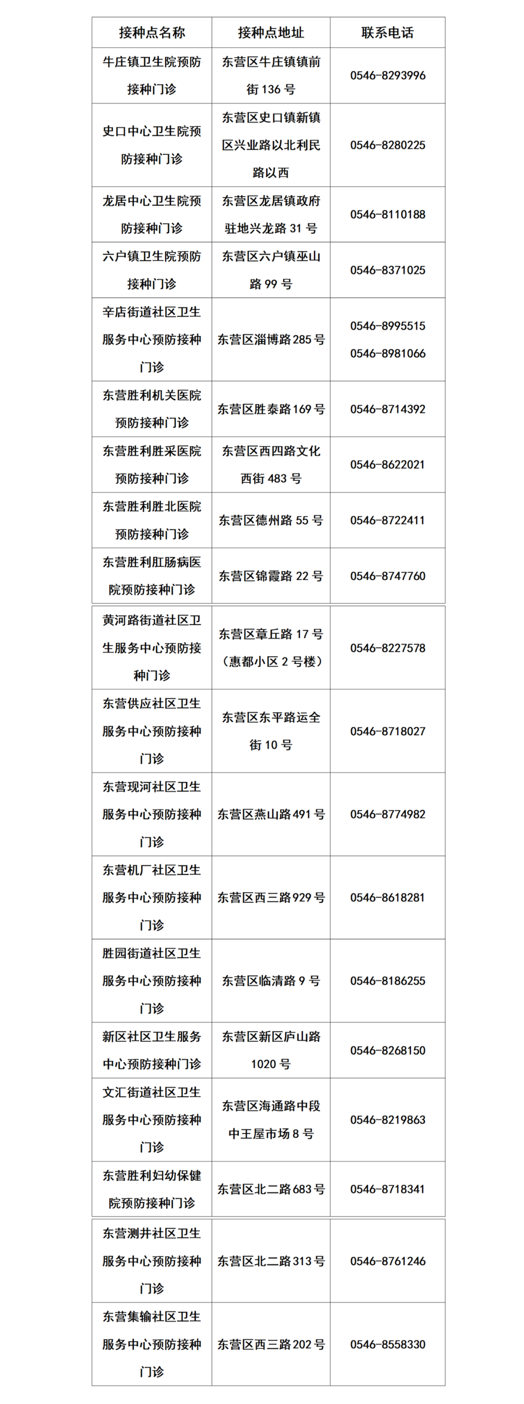 接種地點(diǎn):東營(yíng)市東營(yíng)區(qū)西四路文化西街483號(hào)