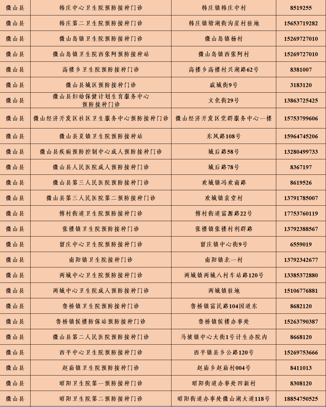 濟寧市微山縣新冠病毒疫苗接種點信息