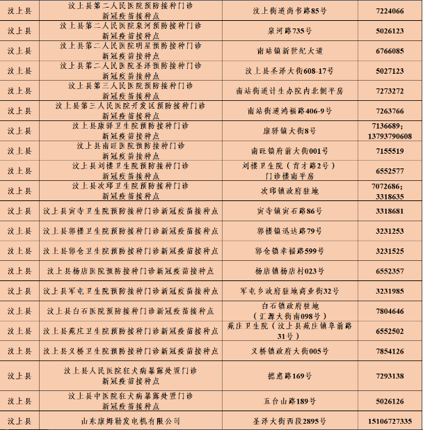 接種地址:濟(jì)寧市汶上縣泉河路735號(hào)