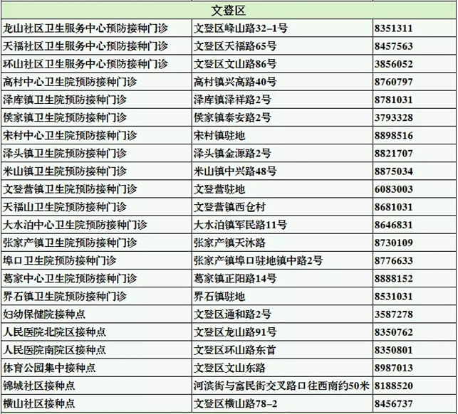 威海市文登區(qū)新冠病毒疫苗接種點信息
