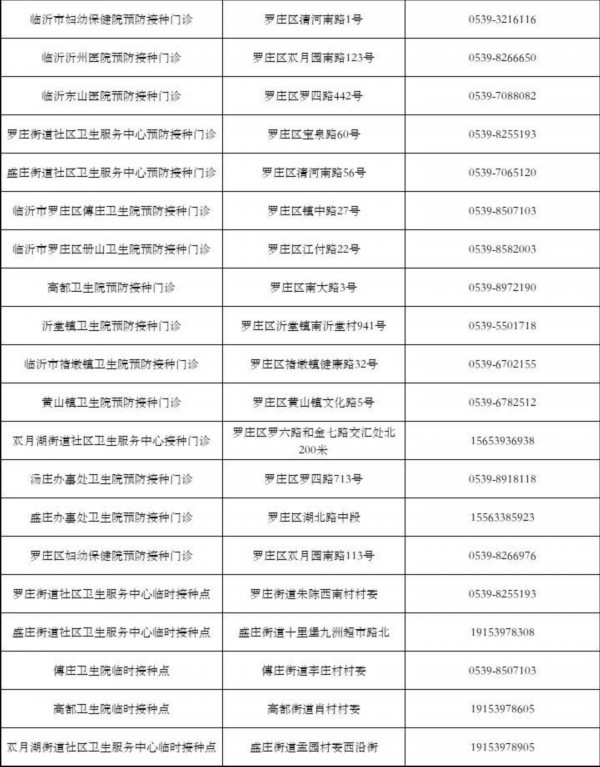 臨沂市羅莊區(qū)新冠病毒疫苗接種點信息