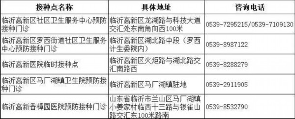臨沂高新區(qū)新冠病毒疫苗接種點(diǎn)信息