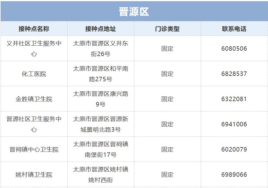 太原市晉源區(qū)新冠病毒疫苗接種點信息